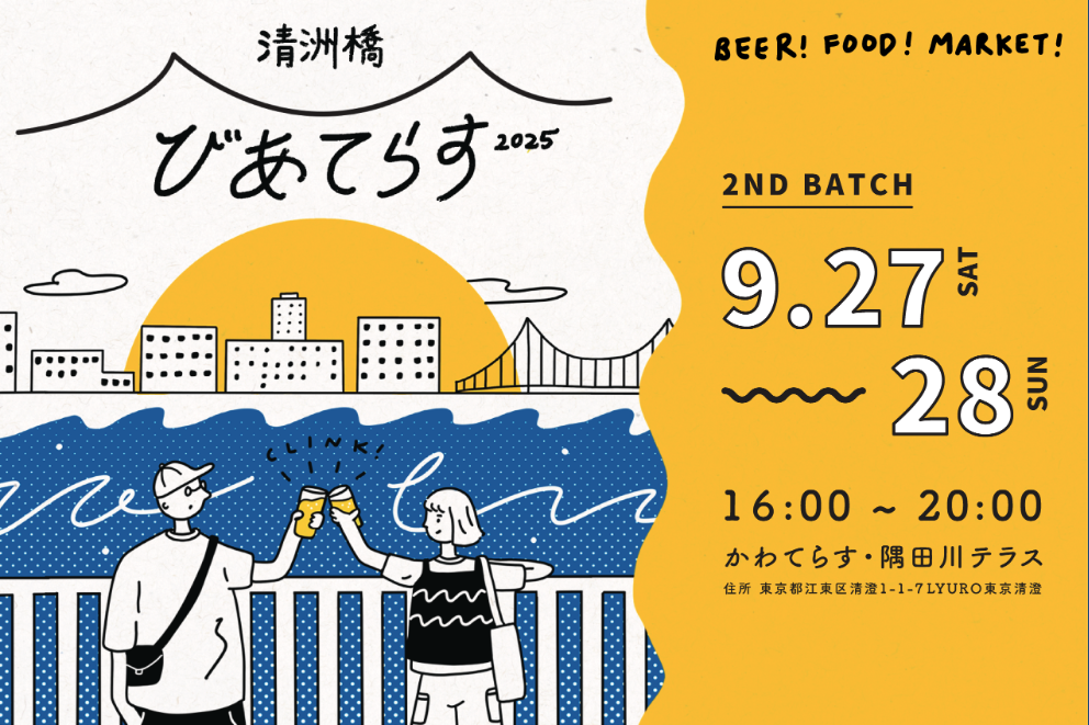 隅田川マルシェの定期イベント「清洲橋ビアマルシェ」を散策します。