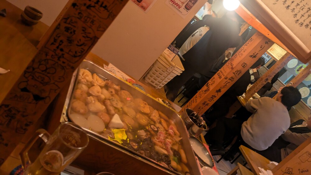 「いらっしゃい、ちょうどおでんがいい具合だよ」