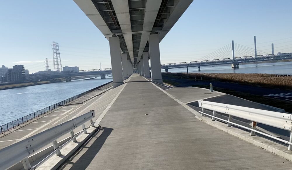 江戸川区を流れる荒川は都内でも有数の大きな川ですが、葛飾区から並行して流れる中川との間は荒川中洲と呼ばれ、首都高速中央環状線の下の河川敷は川に両側を挟まれた道が西葛西付近まで続いている道となります。