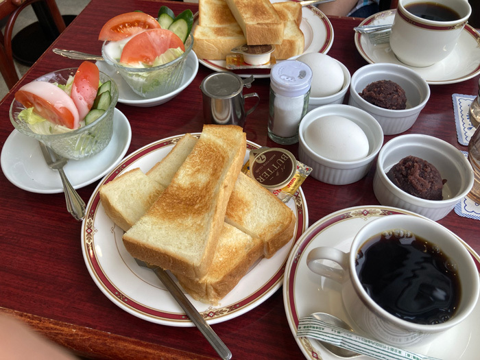 2階の喫茶店ではお得なモーニングを楽しむことができ、700円のトーストセットはホットコーヒー、トーストがおかわり自由となります。
