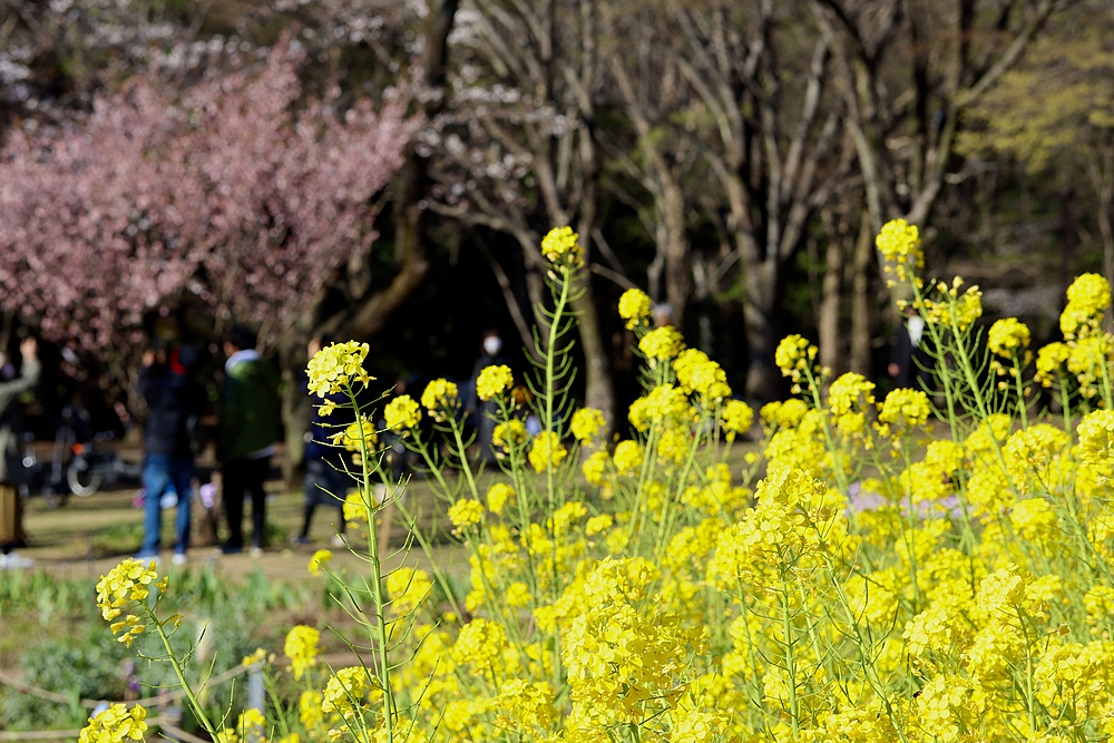 春の代々木公園は、都心にありながら自然豊かな公園で、桜に菜の花と色とりどりに溢れています。