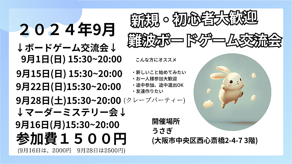 大阪 難波 初心者ボードゲーム交流会 どなたでも大歓迎!!