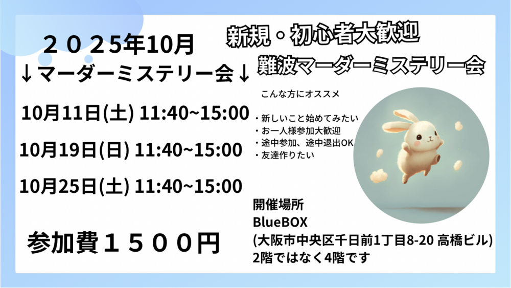 大阪 難波 初心者マーダーミステリー会 どなたでも大歓迎!!
