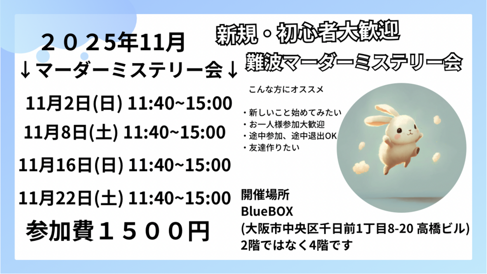 大阪 難波 初心者マーダーミステリー会 どなたでも大歓迎!!