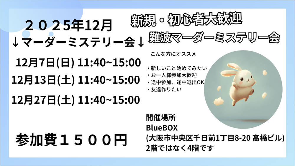 大阪 難波 初心者マーダーミステリー会 どなたでも大歓迎!!