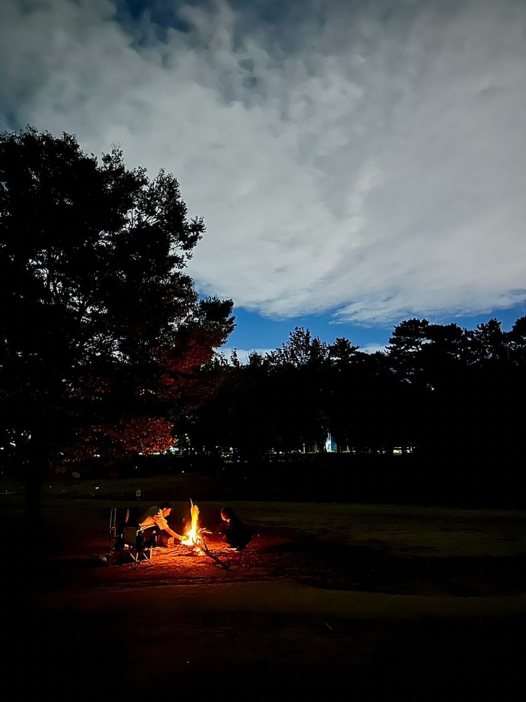 - 心地よい焚き火の灯りの下、新しい友達や仲間との素敵な時間を過ごす