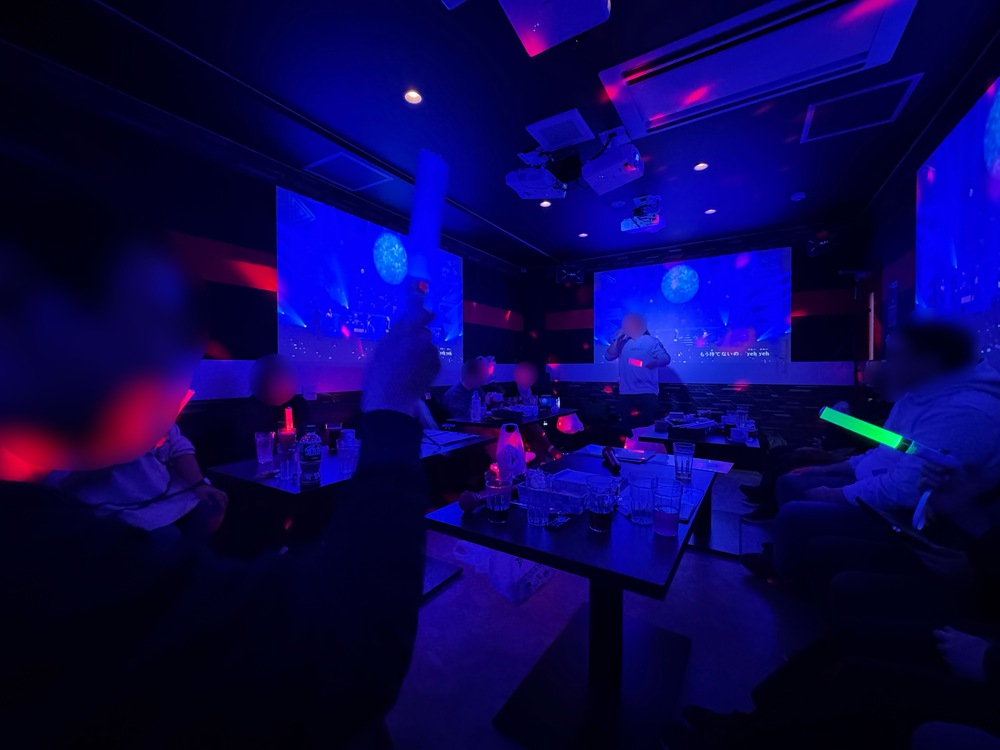 大部屋、マイク計6本、マイクスタンド2本、ペンライト最大20本、ミラーボール、ステージライト2つ、ミキサー、エフェクター、コラボ/リクエストシート、名札、お菓子あり!