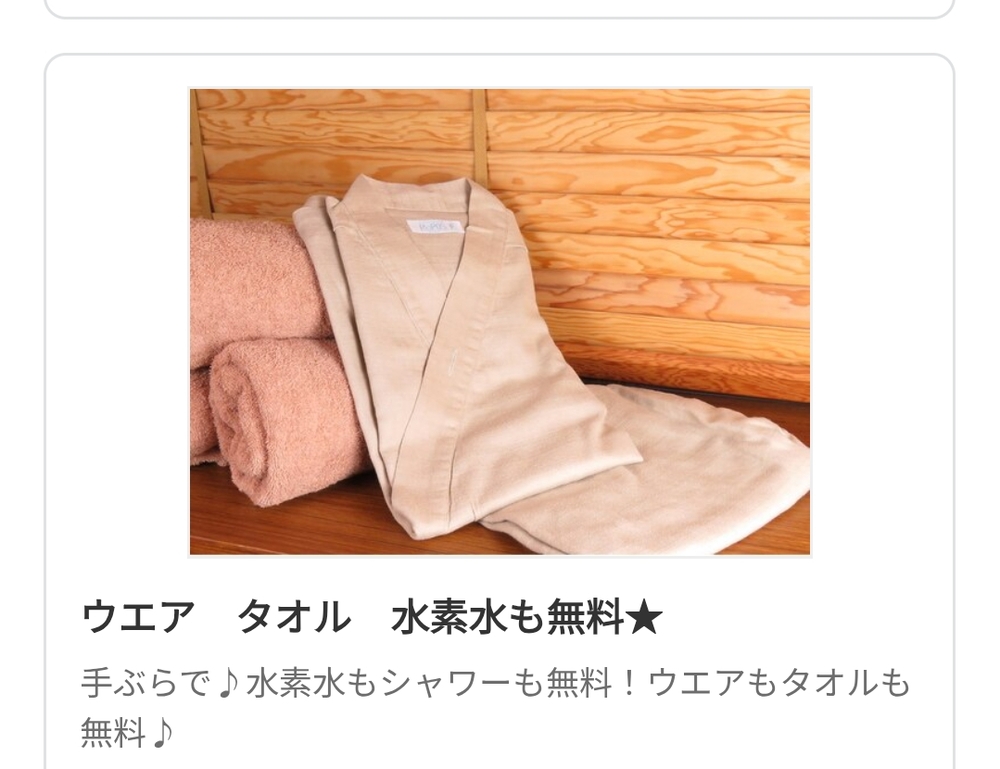 ☆手ぶらで岩盤浴◎シャワー、ウエア、タオル、水素水無料!お客様へのやすらぎを。