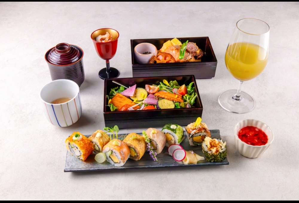 【美・腸活SHARI御膳】腸活栄養士監修 × SHARI料理長による、菌を“摂り・育てる”美腸御膳。1食に36種の食材を使用し、ロール寿司8種を含む全8品。