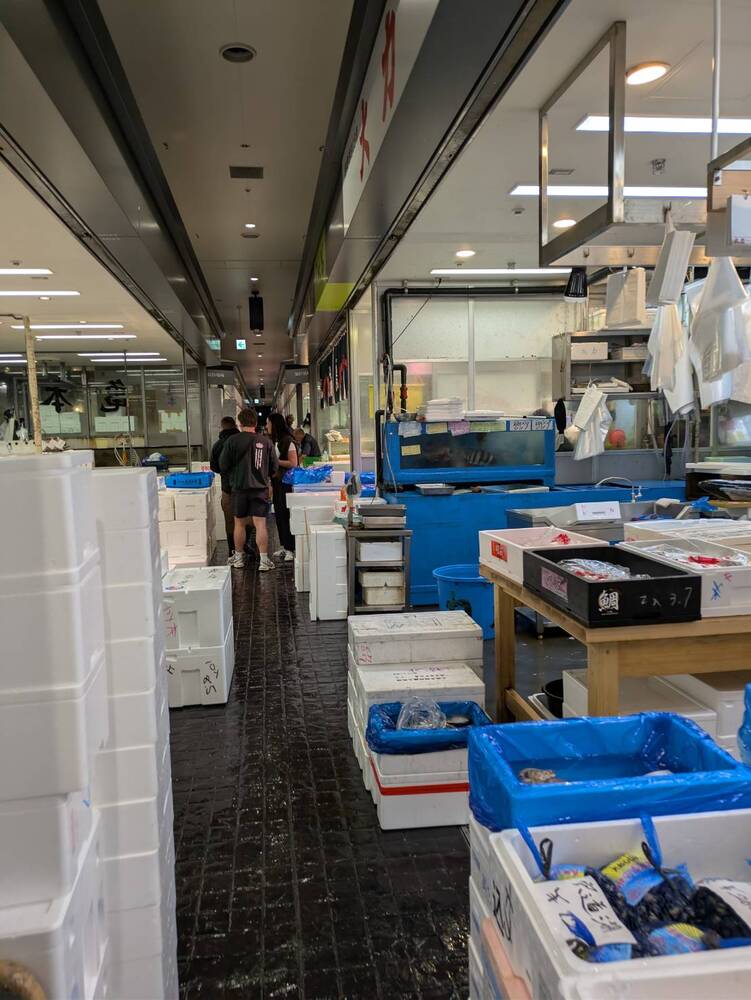 豊洲市場・水産仲卸フロアーは、小売店/飲食店が買い付けに来る場です。