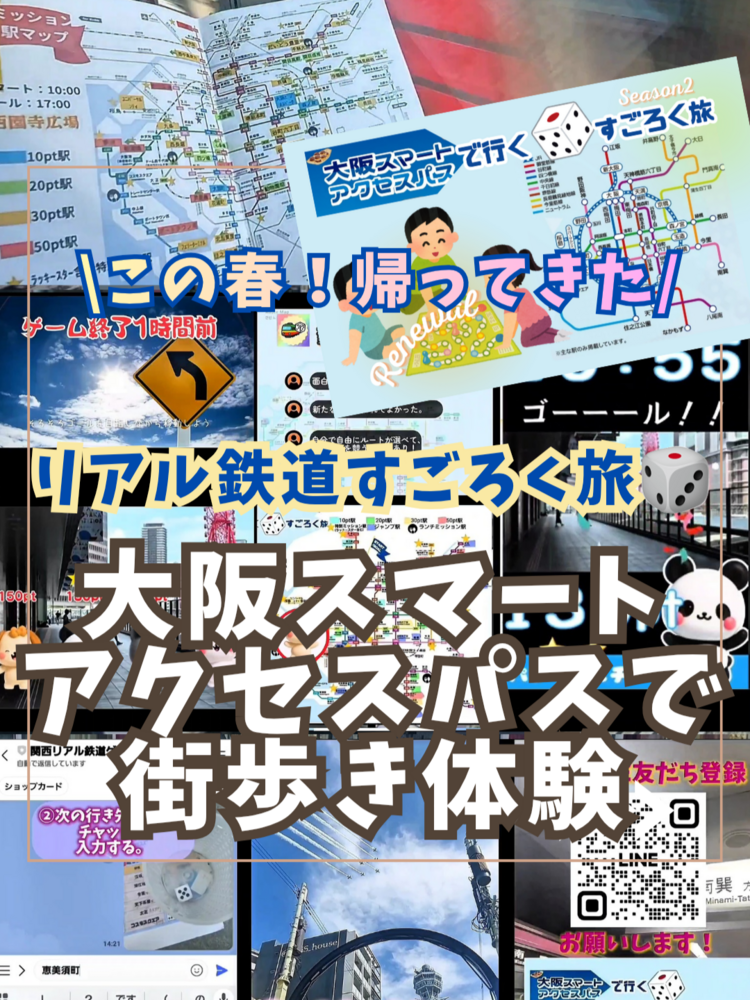 昨年夏に開催された《リアル鉄道すごろくゲーム》がこの春帰ってきた🌸✨ サイコロを振って、実際の電車に乗りながら大阪市内を街歩き。スマートアクセスパスで快適&オトクにめぐる特別イベント!🚃✨️