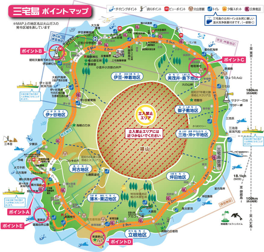・13:45 三宅島三池港フェリー発 → 19:50 フェリー竹芝桟橋着解散