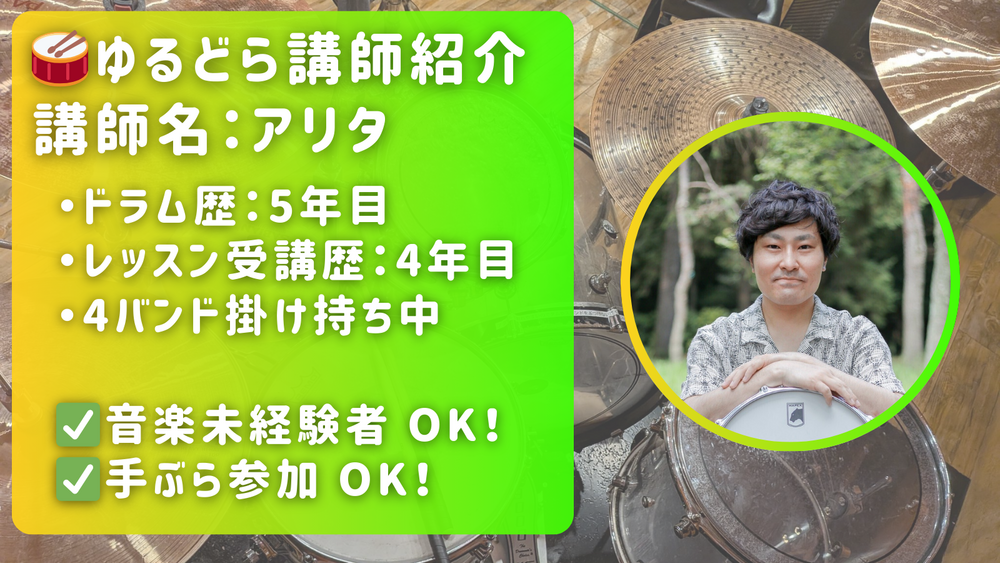 プロではありませんが、4年以上ドラムレッスンを受けてきた経験を活かして、初心者の方が安心してドラムに触れられる場をつくりたいと思い、この体験会を企画しました!