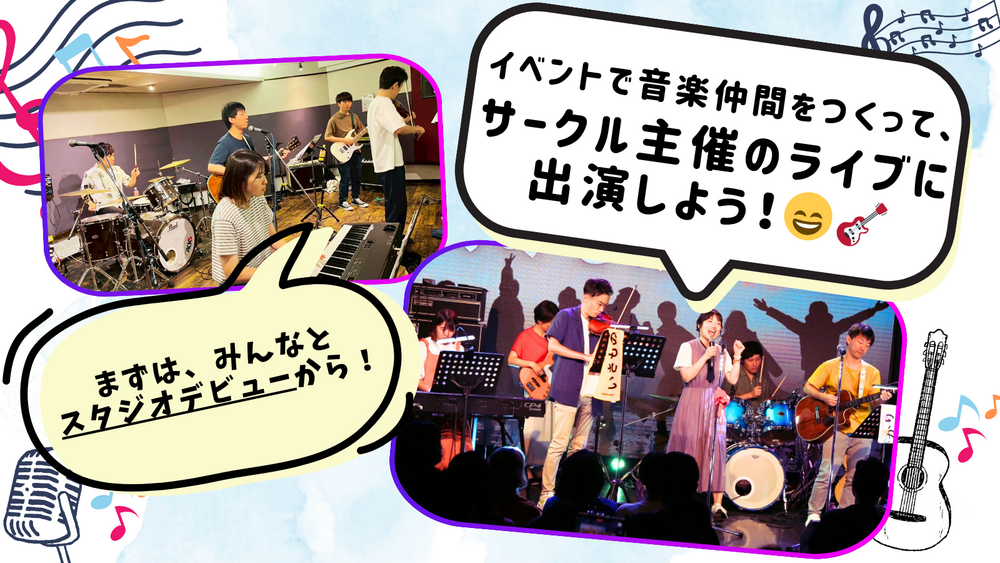 初心者同士での気軜なセッションを通しお、音楜仲間を぀くり、来幎サヌクル䞻催で予定しおいるラむブむベントで、初心者バンドの䞀員ずしおステヌゞに立っおみたせんか🎞