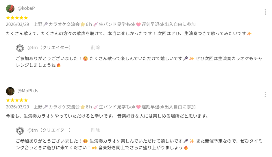 ✅ 音楽交流会+生バンドカラオケ1曲歌唱