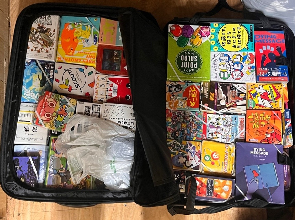 当日はスーツケースで約100前後ほどボードゲーム持っていきます。