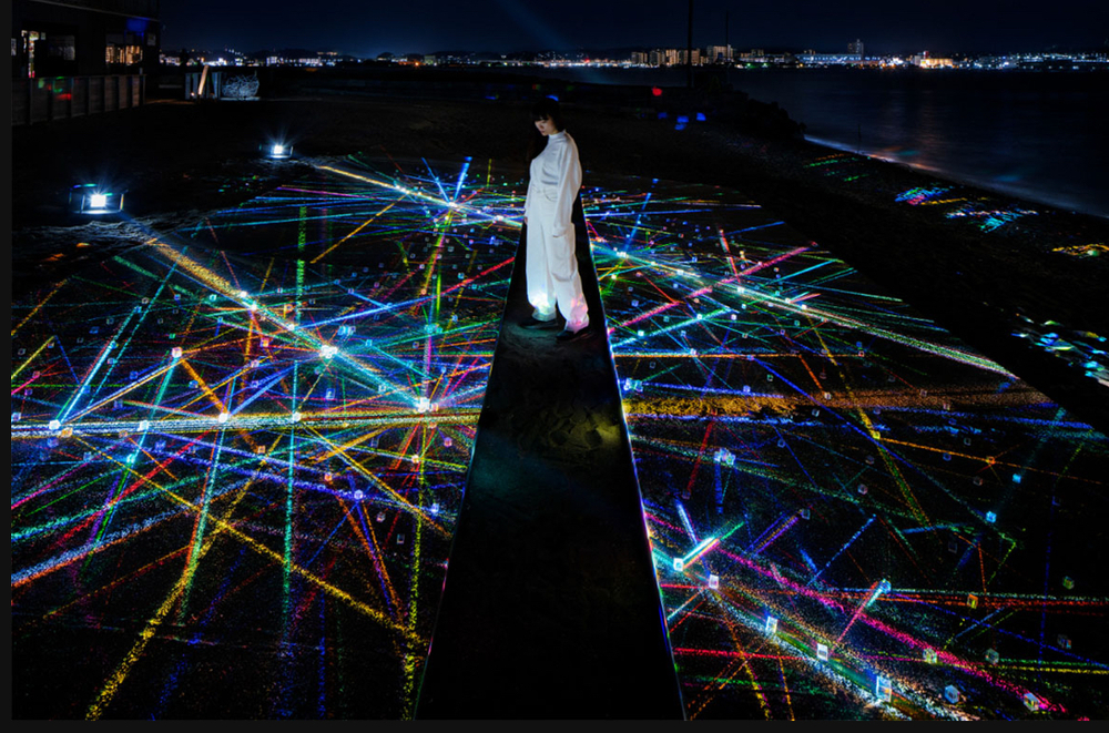 鑑賞者も参加しながら、光を介して人と人を繋ぐ光のインスタレーション。
