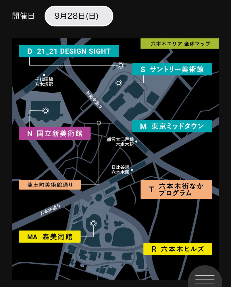 • 会場:六本木ヒルズ、森美術館、東京ミッドタウン、サントリー美術館、21_21 DESIGN SIGHT、国立新美術館、六本木商店街など、六本木エリア一帯の文化施設・公共スペース