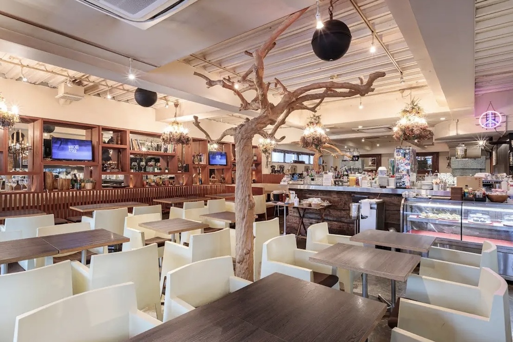 白基調の清潔感ある店内で、豊富なスイーツやヘルシーなカフェご飯などが味わえるダイニングカフェです🥞🥞🌱