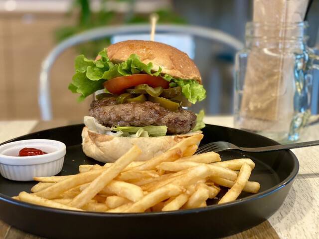おすすめメニューは超巨大なハラペーニョチーズバーガー、甘さがちょうどいいガトーショコラです🌺🌺