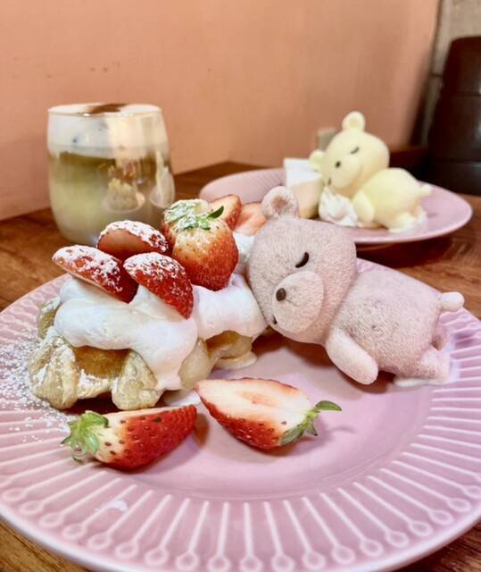 おすすめはいちごクロッフルとおねむりくまさんチーズケーキです🍩🍩