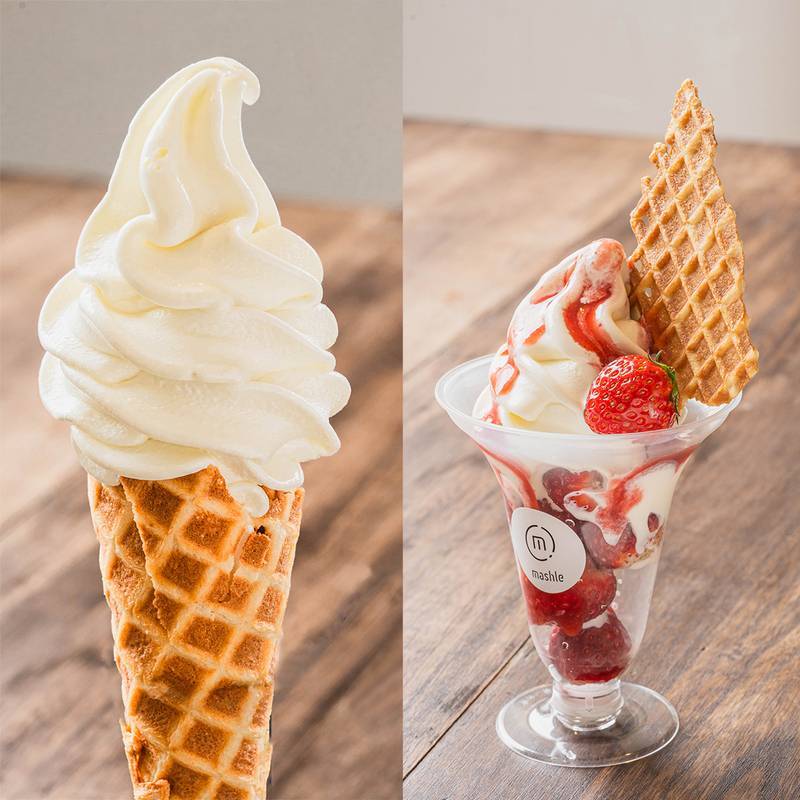 マスカルポーネとパルメザンチーズを使用したソフトクリームに、バスク産の希少チーズ「イディアサバル」を削ってトッピングした、チーズづくしのフレーバーなんです🌹🌹