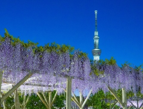 スカイツリーと藤のコラボは圧巻です😋😋