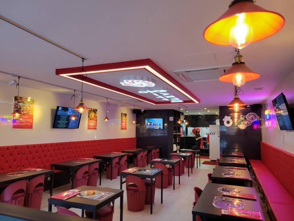 店内はネオンが輝き、音楽が流れる賑やかな空間が広がっています🍭🍭