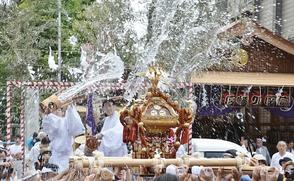 深川八幡祭は、江戸三大祭りにも数えられ、またの名を水かけ祭り。沿道から神輿に向けて、柄杓やバケツ、放水車で景気良く水がかけられ大いに盛り上がります🌊