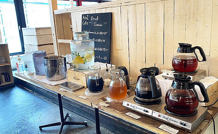 ランチタイムにプレートを注文するとドリンクバーも利用できます。コーヒー、紅茶のほか、はちみつレモンやソーダなど種類もさまざま🥤