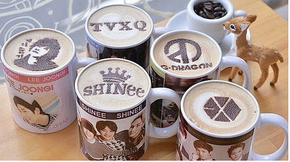 店内ではkpopが流れ、あたり一帯には韓国アイドルの写真がズラり。