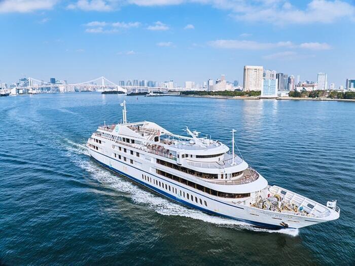 東京湾の輝く海と街並みを眺めながら、✨一流シェフこだわりの豪華ランチビュッフェ✨を堪能!生演奏が流れる船内で味わうランチは、まるで映画のワンシーン🌊デッキに出れば、穏やかな風と光が特別な午後を演出します。✨非日常を感じるひとときを、仲間と一緒にお楽しみください。