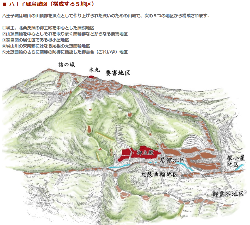 かつて北条氏照が築いた関東随一の山城、八王子城。現在も当時の遺構が数多く残っています。