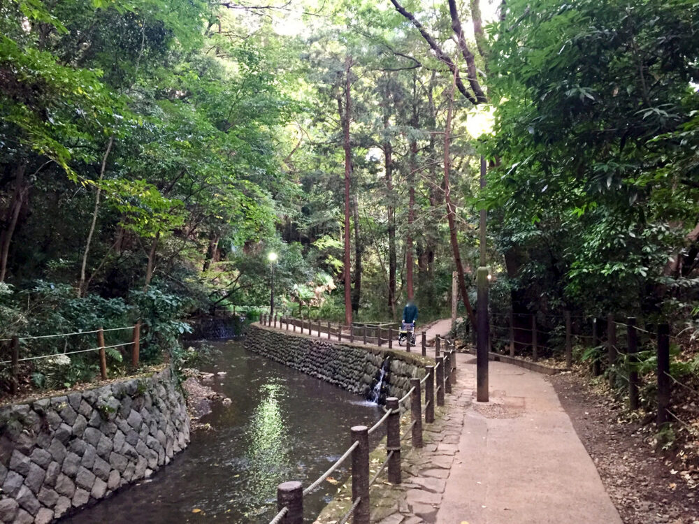 満腹になるまで食べた後は、20分程度歩いて「等々力渓谷」まで散策します。