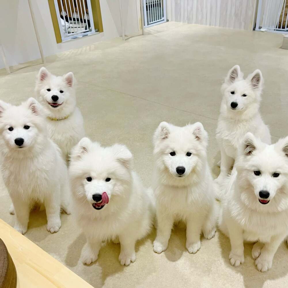 お話ししながらサモエドへおやつをあげたりふれあいを楽しみましょう🐶