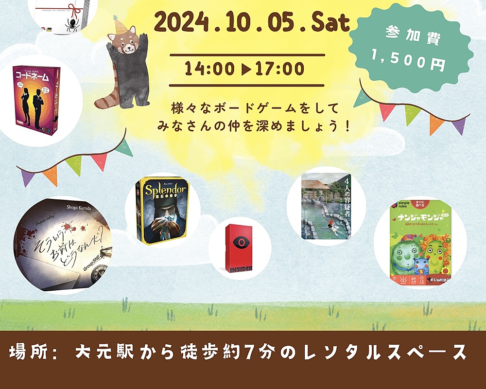 10/5(日)14:00〜17:00にボードゲーム会をします🃏✨