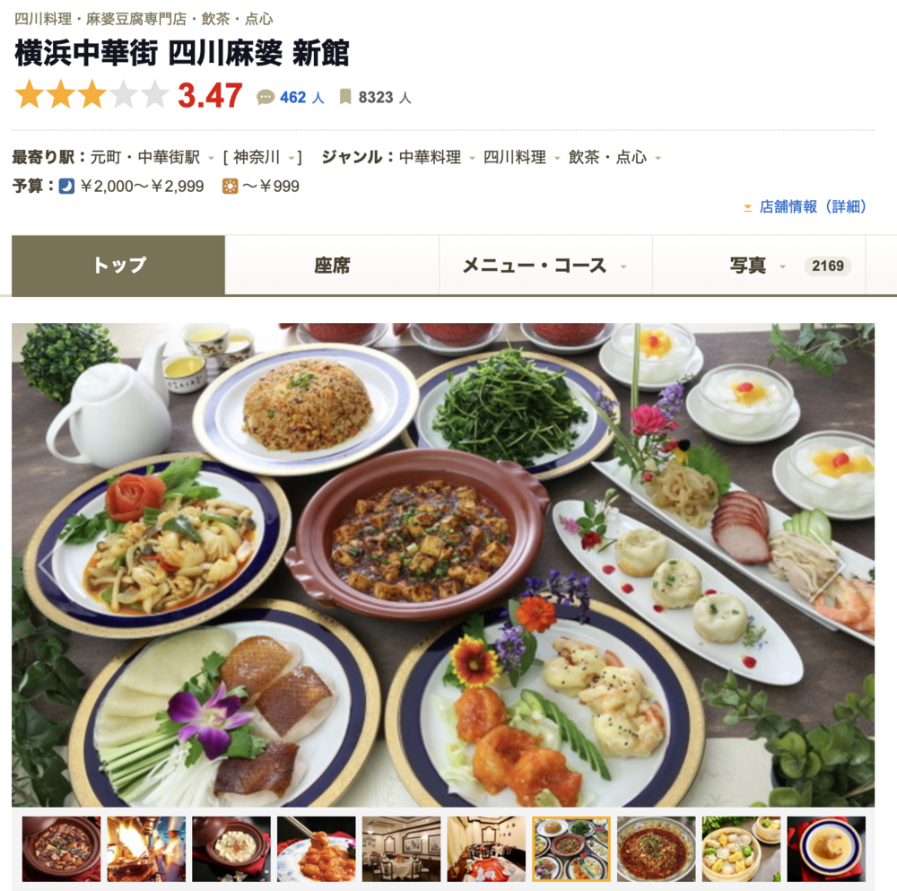 その後の中華は、「横浜中華街 四川麻婆」さんを予約しています。