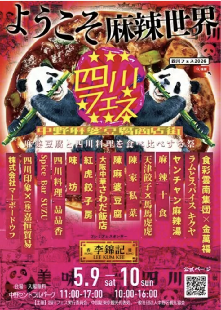 今回は、中野セントラルパークで開かれる四川フェス2026で麻婆豆腐・麻辣世界にだダイブしませんか?