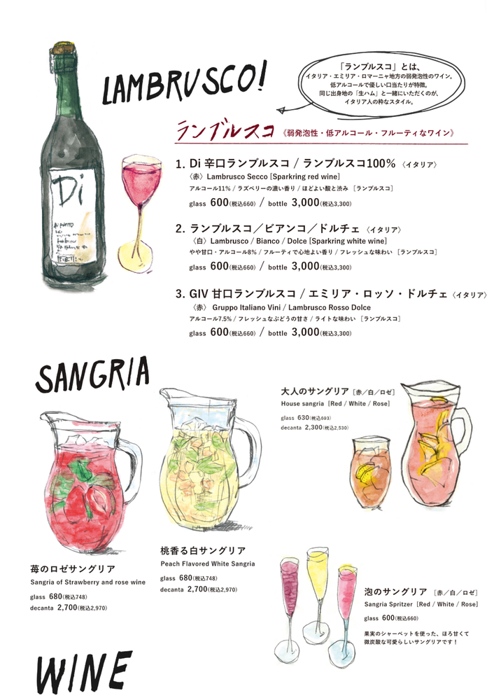 ディプントはイタリアのワインのランブルスコと生ハムが看板メニューです!