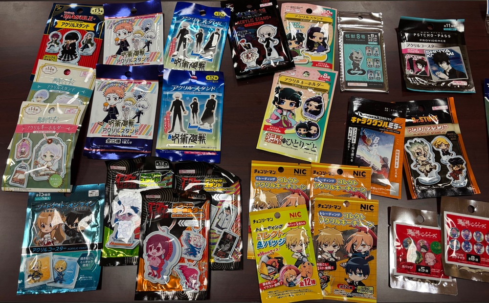私の好きな作品は勿論、観たことのない作品のグッズも用意しており、30個以上用意してますので、お好きな物を受付順にお受け取りください(^^)