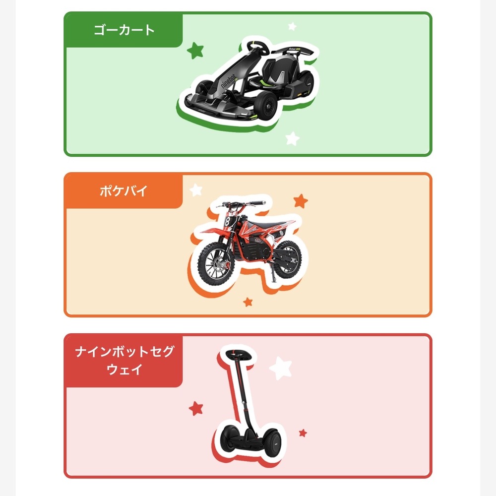 スポッチャ(ポケバイ・ナインボットセグウェイ体験申し込みそれぞれ先着3~4名)