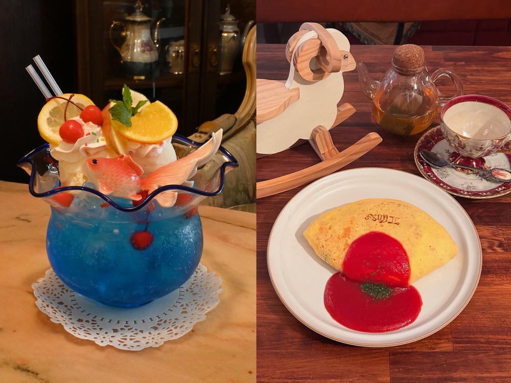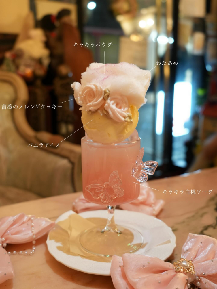 特におすすめが【期間限定】の白薔薇メニューと看板メニューの金魚鉢クリームソーダで、見た目がかわいく推し活にもぴったりの大人気のスイーツです🌷🌷
