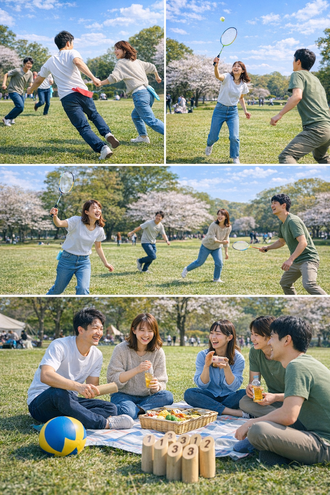 内容 : ピクニック🍙&公園での芝生遊び🏸 ͗ ͗
