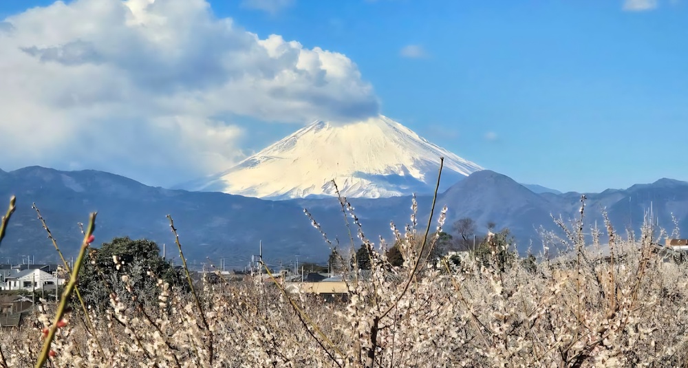**曽我梅林**は、富士山と箱根の山々を背景に、約3万5千本の梅が咲き誇る関東有数の梅の名所です。