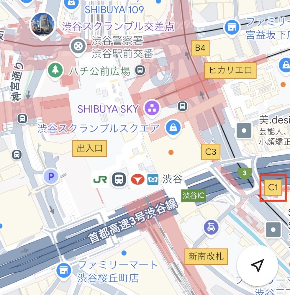 地下から向かう場合、下画像のように、「C1」が最寄り出口です。