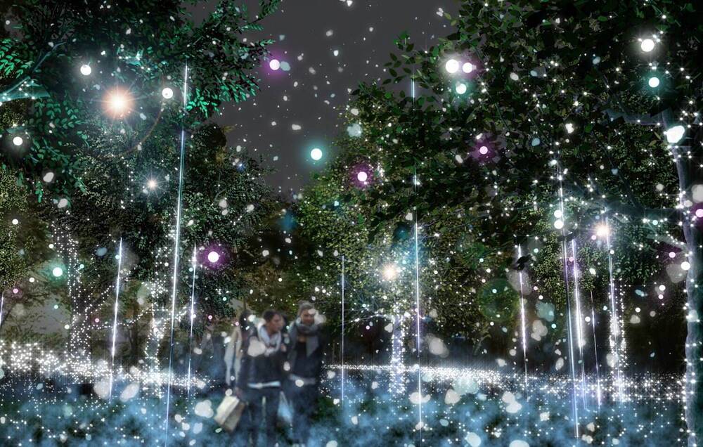 幻想的な雪の世界へ誘うイルミネーションが登場し、期間限定でふわふわと漂うしゃぼん玉や雪が降る特別な演出も体感出来ます🍩🍩