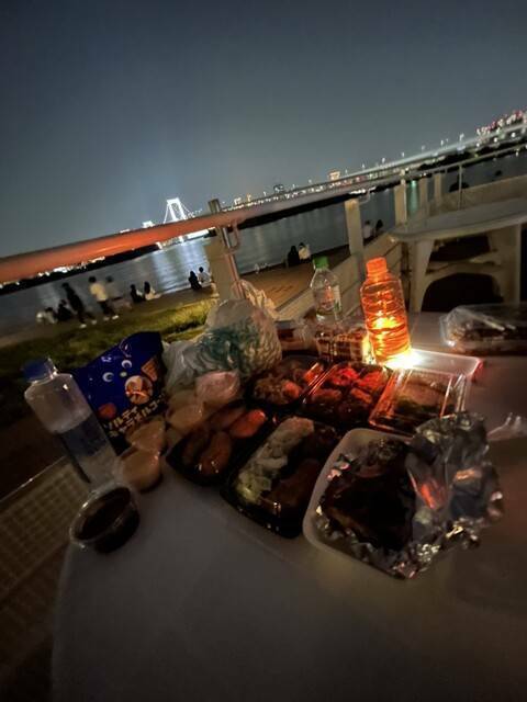 夏らしく海の見える公園でナイトピクニックしましょう🐽🐽
