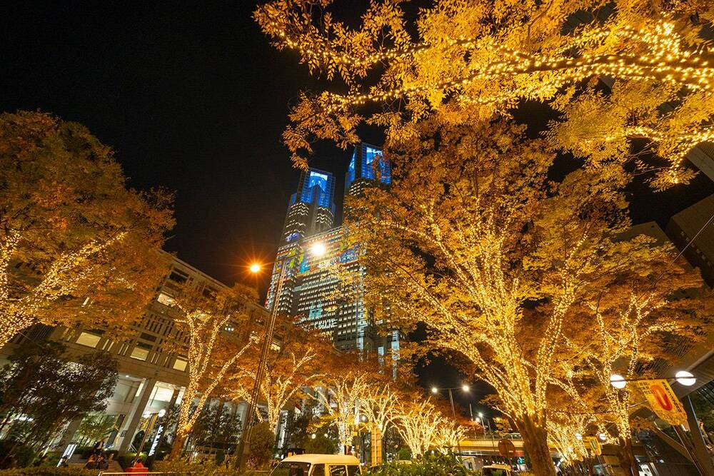 冬の夜空をロマンチックに彩り、ビル全体を包み込むイルミネーションが、新宿らしい都会のクリスマスを演出します〜🌹🌹