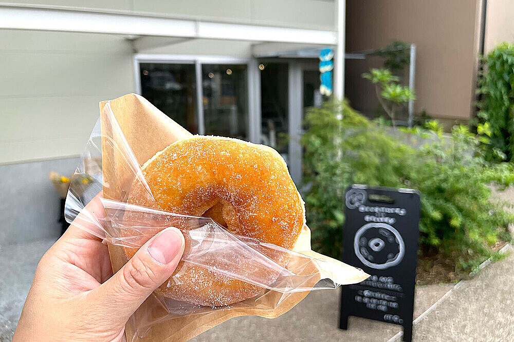 そんな同店でオススメしたい食べ歩きグルメは「なっとうドーナツ」。ドーナツ生地にこだわりの納豆を使用した、しっとり食感が人気の焼きドーナツです。