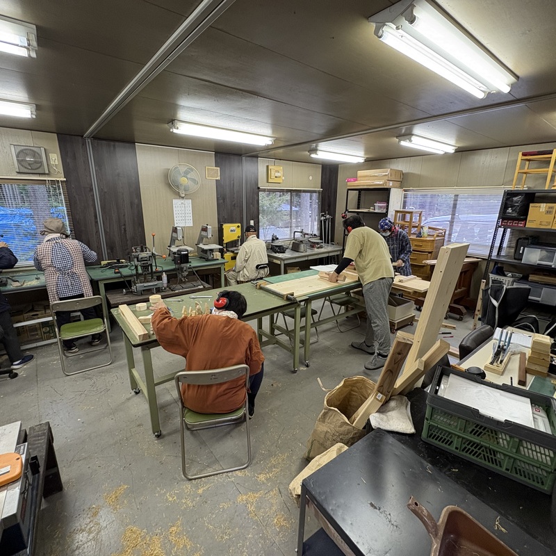 DIY好きの仲間達が集まって、ワイワイ楽しく製作活動をしている趣味の木工サークルです。 主に土曜・日曜・祝日(時々平日)の10〜16時に、のどかな田舎の山小屋で、小鳥や虫の鳴き声を聴きながら、のんびり活動しています。 一輪挿し、ペン立て、スマホ立て、カッティングボード(まな板)、表札、額縁、箱物(名刺入れなど)、フラワースタンド、椅子、机、飾り棚、隙間収納棚、ベンチ、ベッド、ロフト、ウッドデッキ、東屋、小屋、倉庫…etc. 木製品であれば、ほぼほぼ何でも製作可能です。 スライド丸鋸、帯鋸、糸鋸、ジグソー、チェーンソー、ボール盤、角ノミ盤、直角鉋、自動鉋、電気鉋、ルーター、トリマー、インパクト・ドリルドライバー、サンダー、グラインダー、クランプetc. 日曜大工・DIY程度であれば十分過ぎるほどの機械と工具の数々を潤沢に取り揃えています。 予約制★1日最大10名様限定★ この工房使用料、機械使用料、工具使用料…の全て込みで1日なんと参加費1,500円(材料は各自持込みでお願いします。小物製作の場合、初回のみ端材サービスします。なお、見学だけの方のご来場、未就学児の同伴はお断りしています) 現在の会員はDIY女子が多く、男女比率は3:7 しかも、初心者にはベテラン会員による優しく丁寧な指導付き(指導料無料の木工教室) 未経験者・高齢者でも大歓迎‼ 予約制につき、事前にご連絡ください( ^-^)ノ∠※ 皆様のご来場をお待ちしております。 【注】安全上の注意事項については可能な限りの助言を行いますが、危険な電動工具や鋭利な刃物を使用する関係上、怪我等が生じた場合、参加者様ご自身の責任であることをご了承の上、ご参加ください。